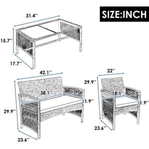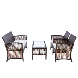 4 IN 1 Outdoor Furniture Rattan Chair Table Terrace Set Garden Sofa Backyard Porch Poolside Brown Patio Furniture USA Shipping
