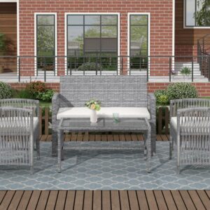4 IN 1 Outdoor Furniture Rattan Chair Table Terrace Set Garden Sofa Backyard Porch Poolside Muebles Patio Furniture