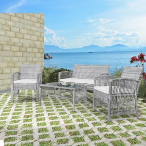 2. [Durable PE Rattan] Made of strong PE rattan, it can bring you the best of both worlds experience. Enjoy the appearance of traditional rattan without worrying about element wear and bad weather. This rattan outdoor patio kit is waterproof and coated with UV-resistant paint to extend its life.