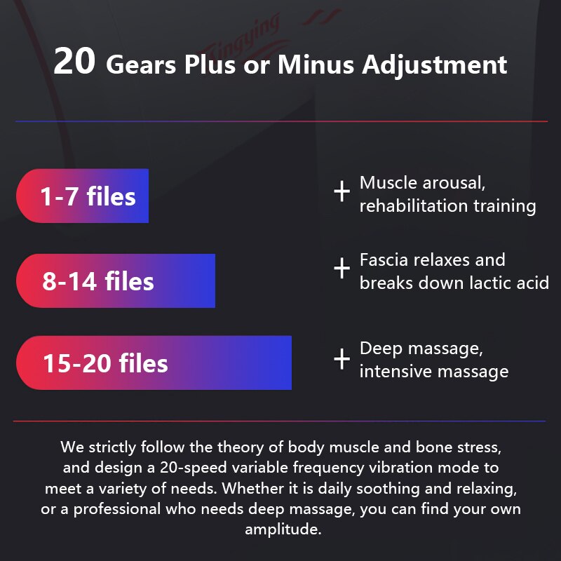 – Up to 3600 percussions per minute and 12 mm amplitude provides deep muscle relief, overall recovery, decreasing pain and increasing range of motion.