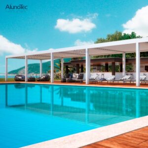 The patio pergola features two standard colors options(white and grey)that compliment almost any architecture. Available in hundreds of custom colours from RAL color chart